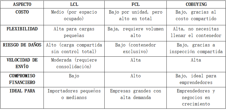 Ya sea que estés comenzando un negocio o buscando nuevas formas de reducir costos, el cobuying es una opción inteligente y accesible. Ofrece la flexibilidad del LCL con los beneficios de costo del FCL, todo en un solo sistema.